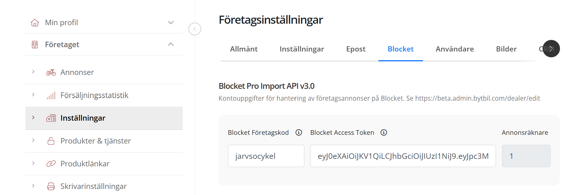 Hej! Jag vill få åtkomst till Blocket API för vår webb-butik så vi kan administrera annonser genom Blocket Pro Import API.