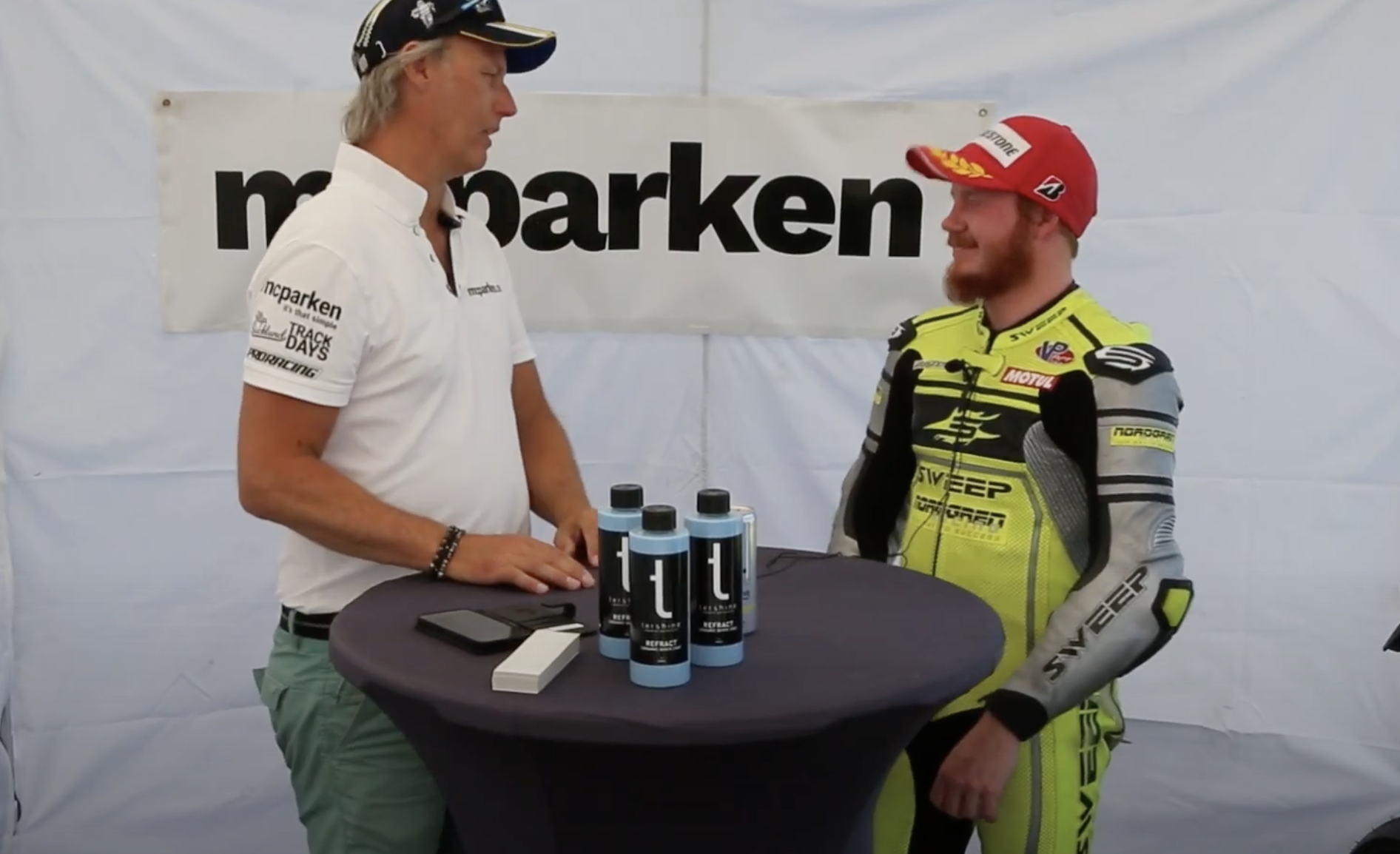 mcparken fick möjlighet under lördagseftermiddagen att ta ett snack med Theo som kör för team Suzuki. Vi diskuterade precis som med övriga den lördagen vädrets påverkan både på förare, tider och maskinen vilket är mycket intressant att höra. Theo körde fort i kvalet och kom in som 4:a. När racet drog igång så gick tyvärr något i motorn sönder så loppet fick avbrytas. Men, som m