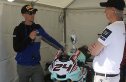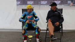 Oliver som kör både SST600 och R6 Cup får i sig många tävlingsvarv och det lönar sig verkligen. Om han inte åker av så står han i princip på pallen väldigt ofta. Idag var det bättre förhållanden i backen. Vi fick några minuter med honom för sedan var det dags att rusa iväg till nästa race!